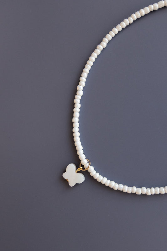 Baby + Kid White Necklace + Shell Butterfly Pendant