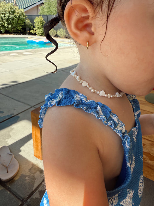 Baby + Kid Pearl + Shell Heart Necklace