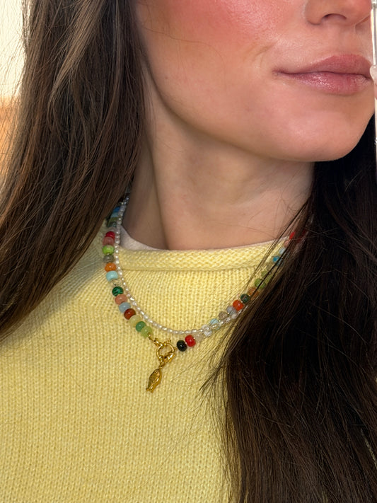 Strawberry Quartz Necklace + Coin Pearl Pendant