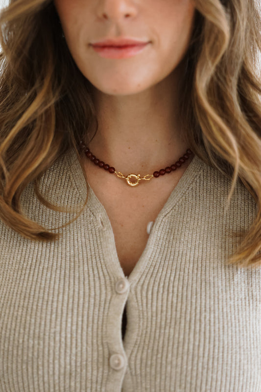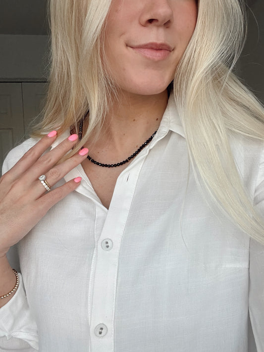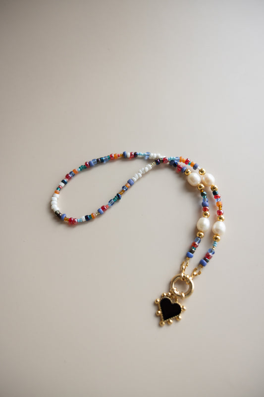 Pearl + Seed Bead Necklace + Black Heart Pendant