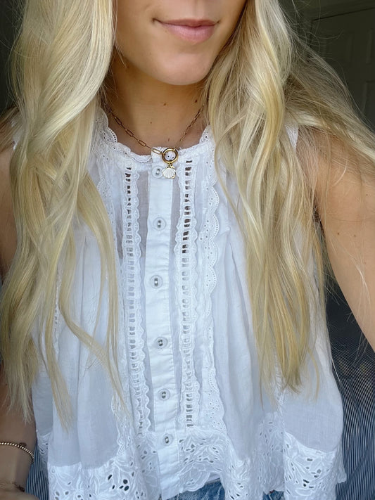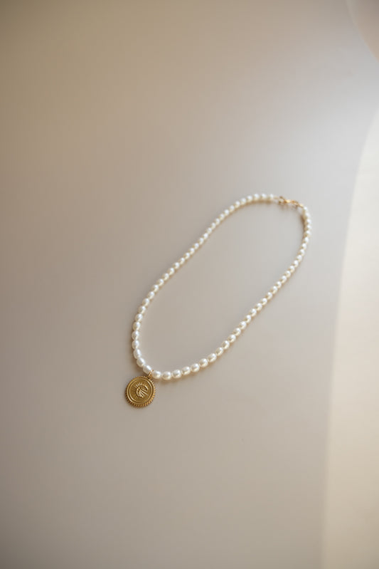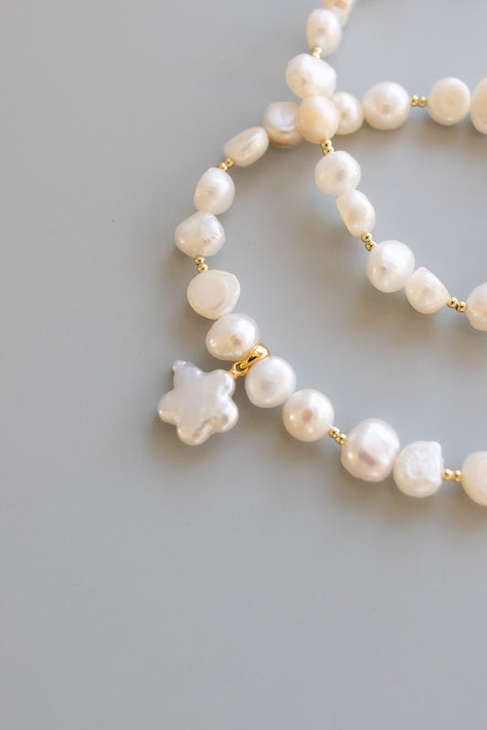 Pearl + Gold Necklace + Flower Pearl Pendant
