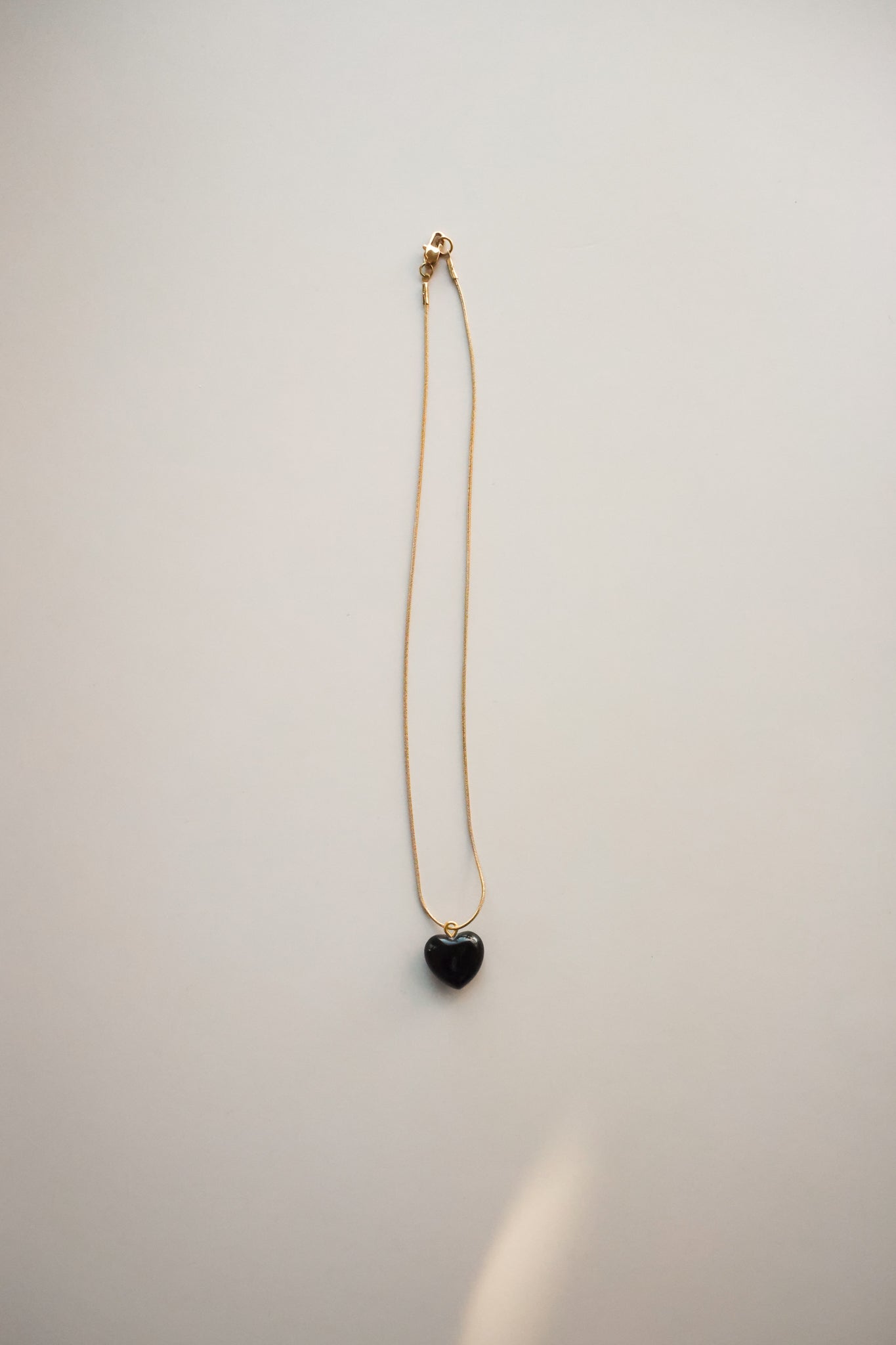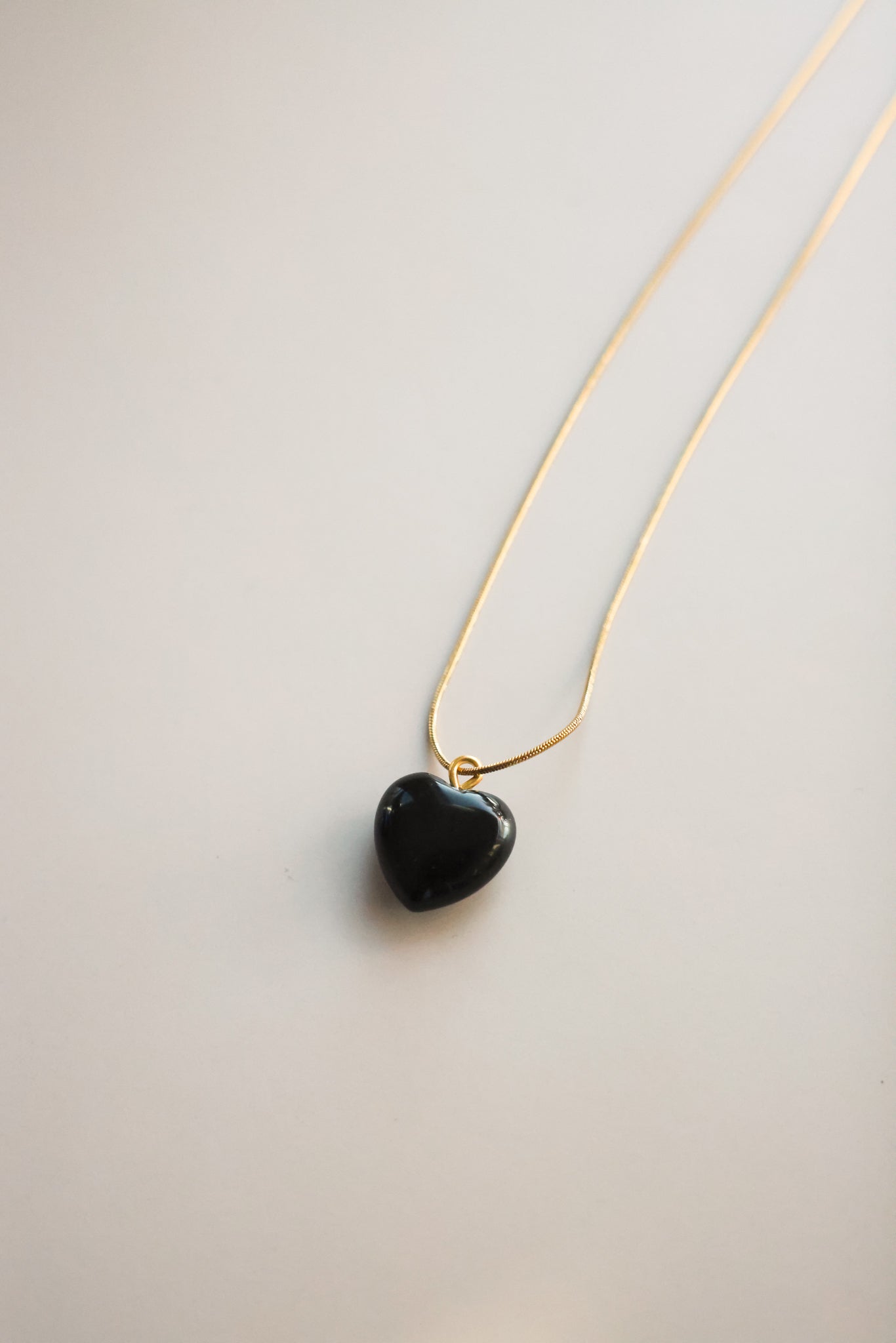 A modern classic with a romantic edge. The Midnight Heart Necklace features a sleek gold filled snake chain paired with a polished black onyx heart charm. Simple yet striking, this piece is designed to layer effortlessly or stand alone as a subtle statement.