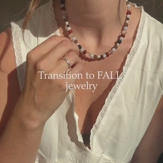 Made for the ones that love a little bit of everything - featuring genuine 4mm + 8mm black onyx, 6mm aquamarine, 5x8mm rondelle red jasper, 8mm clear quartz, 6mm freshwater rice pearls, and finished with a 10mm gold-filled springring closure + hardware.