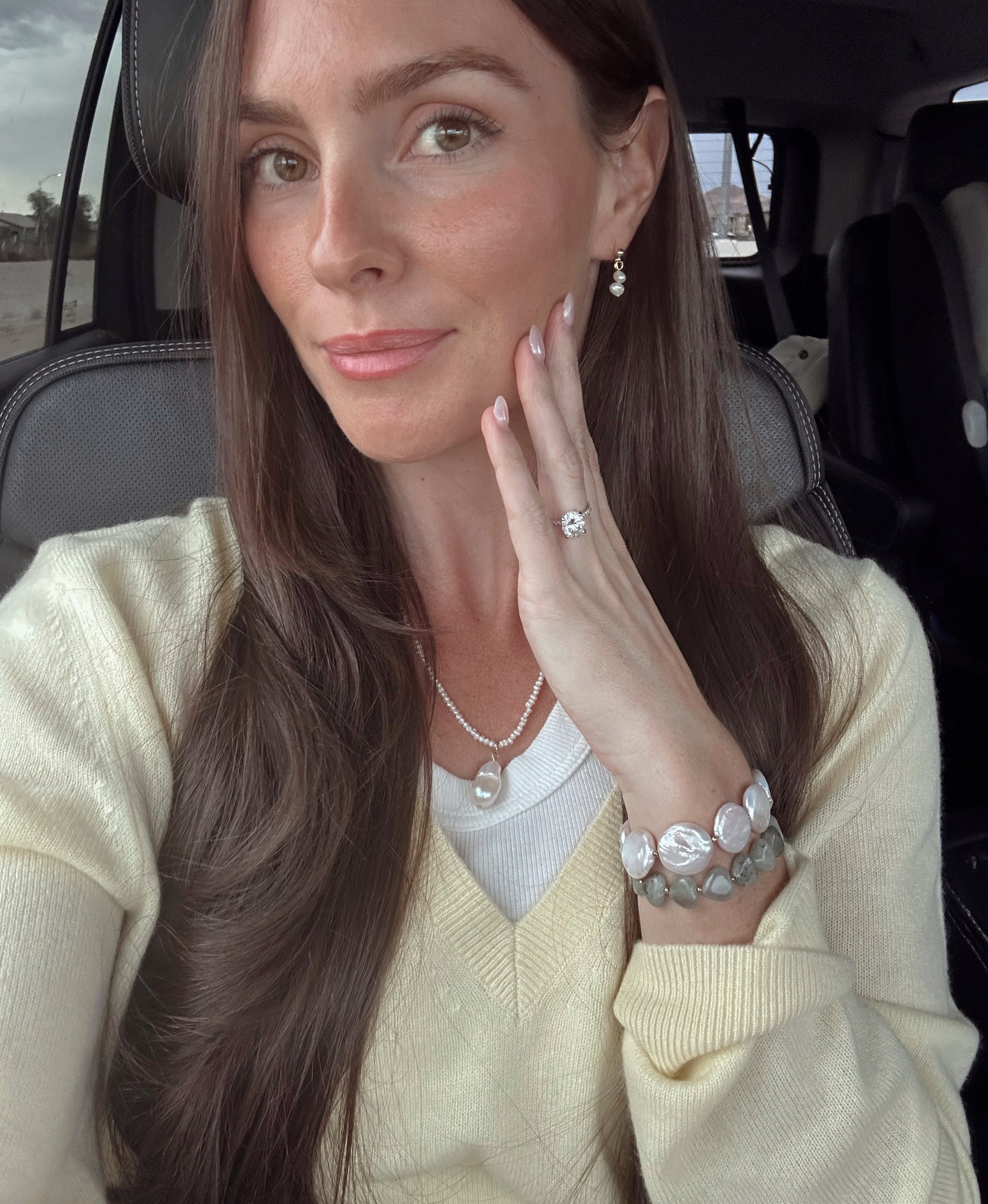 Handcrafted from genuine freshwater pearl coin pearls, 2mm gold filled spacer beads, and gold filled 10mm springring closure.