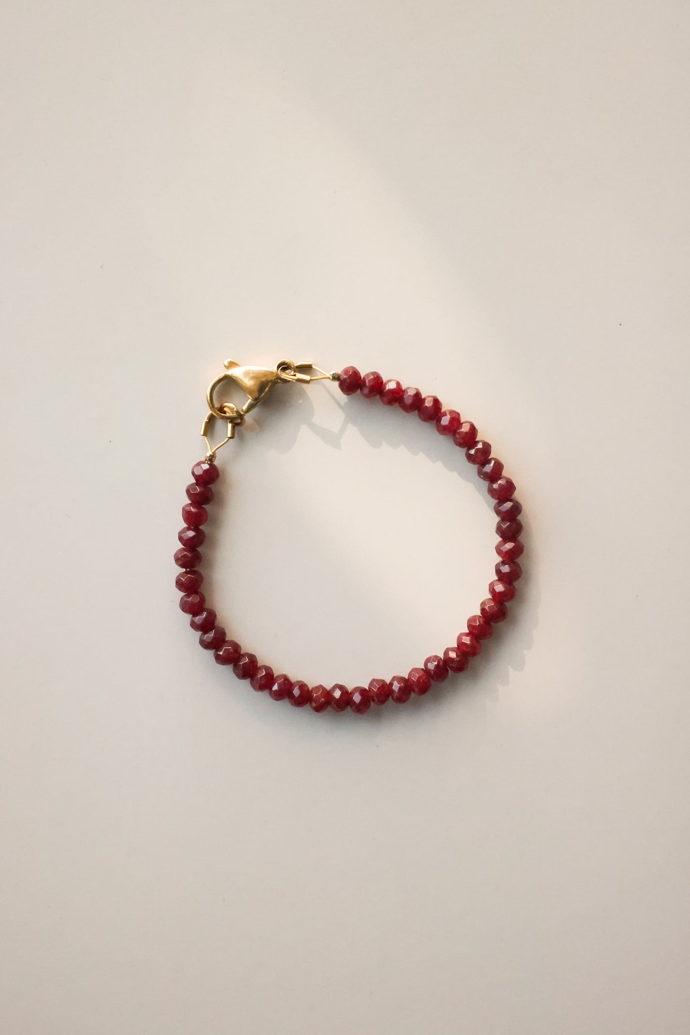 A rich pop of color designed to be worn every day. The Red Velvet Bracelet features faceted Malaysian jade beads that catch the light beautifully, finished with a luxe gold filled springring closure. Minimal yet striking, it’s the perfect piece to wear solo or layered with your everyday stack.