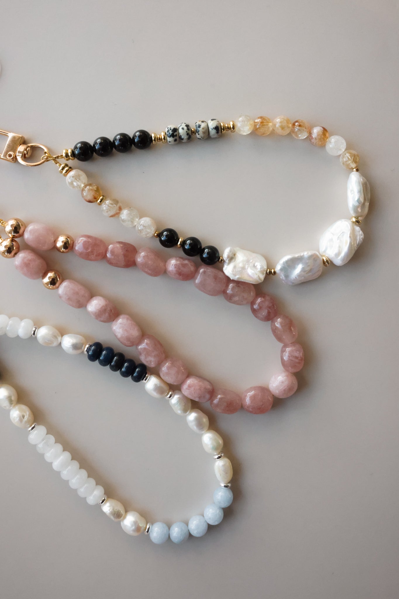 Meet the Neutral Girl Charm Set — a curated trio designed to mix, match, and elevate your everyday accessories. Each charm is thoughtfully crafted with natural gemstones, pearls, and easy-to-use clips so you can switch up your look effortlessly.